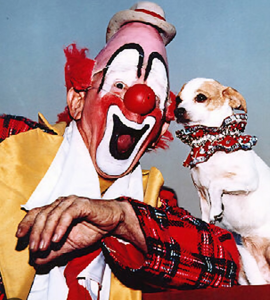 My clown name for this character was, Toofer. I had a yellow mouse on my hat. If a kid said, “That’s silly name.” I would say in a dopey clown voice, “See the little mouse? It rides up there cause it’s Too-fer to jump.” That always got laughs and groans. In clown lore, a groan is worth two laughs. It never failed. But in Spanish, the name didn’t translate so one of the administrators at the school gave me a new name.